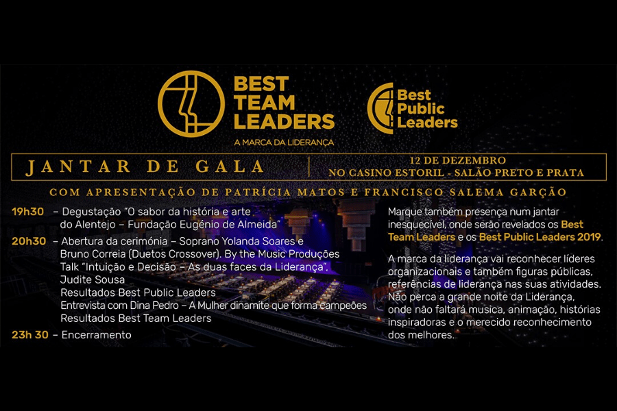 É já no próximo dia 12 de dezembro que vão ser entregues os prémios Best Team Leaders 2019, num jantar