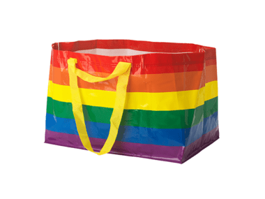 Na IKEA, empresa de retalho de decoração sueca, estão comprometidos em garantir que os colegas de trabalho e clientes LGBT+ possam ser eles mesmos. Em 2019, como um sinal visível deste compromisso, produziu uma versão arco-íris de edição limitada da icónica bolsa FRAKTA, com 100% das vendas a reverter para causas e instituições de caridade LGBT+.