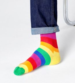 A empresa de meias fez uma parceria com a The Phluid Project para criar uma coleção de seis meias bem a tempo do Pride Month. Happy Socks e The Phluid Project estão a dar 10% de cada venda líquida da coleção para o The Trevor Project – a maior organização mundial de prevenção de suicídios e intervenção em crises da comunidade LGBTQ.