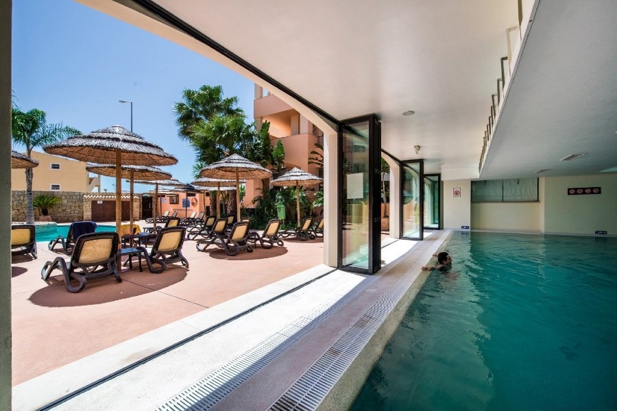«Os confortáveis apartamentos (de um, dois, três e quatro quartos) e proximidade da praia, supermercado, farmácia e serviços de restauração fazem deste resort o local ideal para uns dias animados entre família. O restaurante Hugo Beaty está aberto todos os dias e aqui os hóspedes podem conhecer o melhor da cozinha internacional, bem como uma selecção de tapas e petiscos, que tão bem acompanham uma partida de futebol ou uma disputa na sala de jogos.